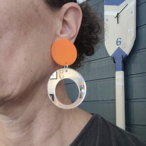 Ces audacieuses boucles d'oreilles clips miroir orange, conçues par Christina Christi, marient le dynamisme pop des années 70 à la légèreté du plexiglas (9g), offrant une hauteur de 8 cm pour un look graphique et incroyablement glamour, parfait pour toutes les oreilles.