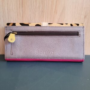 Portefeuille en cuir HALF MOON rose et panthère - Organisation complète et style multicolore