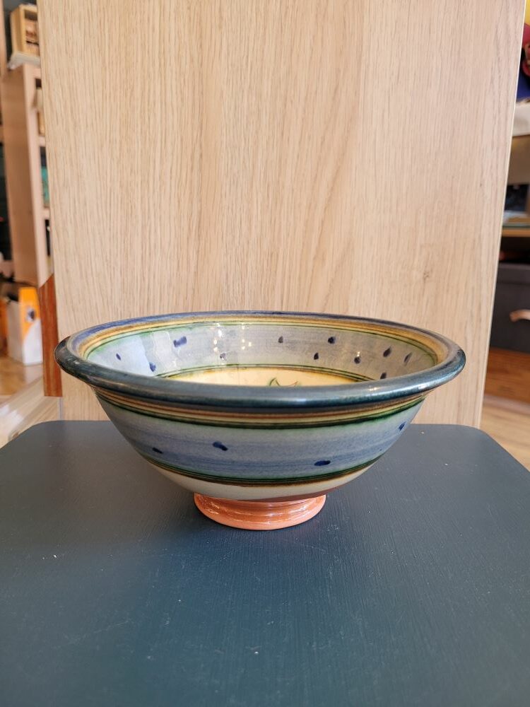 Derrière ce ravissant saladier se révèle l’expertise et la passion d’Agnès Girard, la talentueuse céramiste de la Poterie du Breuil. Forte de plus d’un demi-siècle de travail de l’argile, Agnès maîtrise avec brio la technique des terres vernissées. Ce procédé traditionnel confère à chaque pièce une richesse de couleurs et une brillance singulière, tout en mettant en valeur la beauté naturelle de la faïence rouge. Choisir ce saladier signé de la Poterie du Breuil, c’est soutenir un artisanat d’excellence et acquérir un objet unique, porteur d’une longue tradition et d’un amour pour la matière.