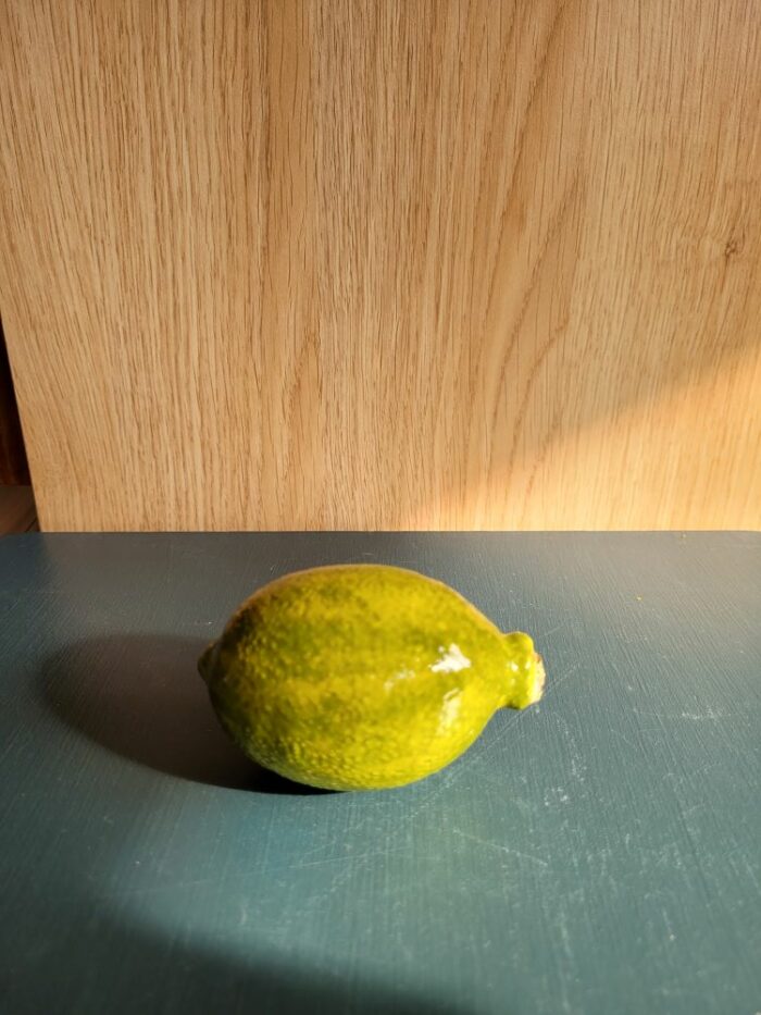 La céramique est un matériau durable et facile à entretenir. Un simple coup de chiffon doux suffit à raviver l’éclat de ce citron vert et à le préserver au fil du temps. Sa couleur vive est obtenue grâce à des émaux de qualité qui résistent à la lumière et conservent leur intensité.