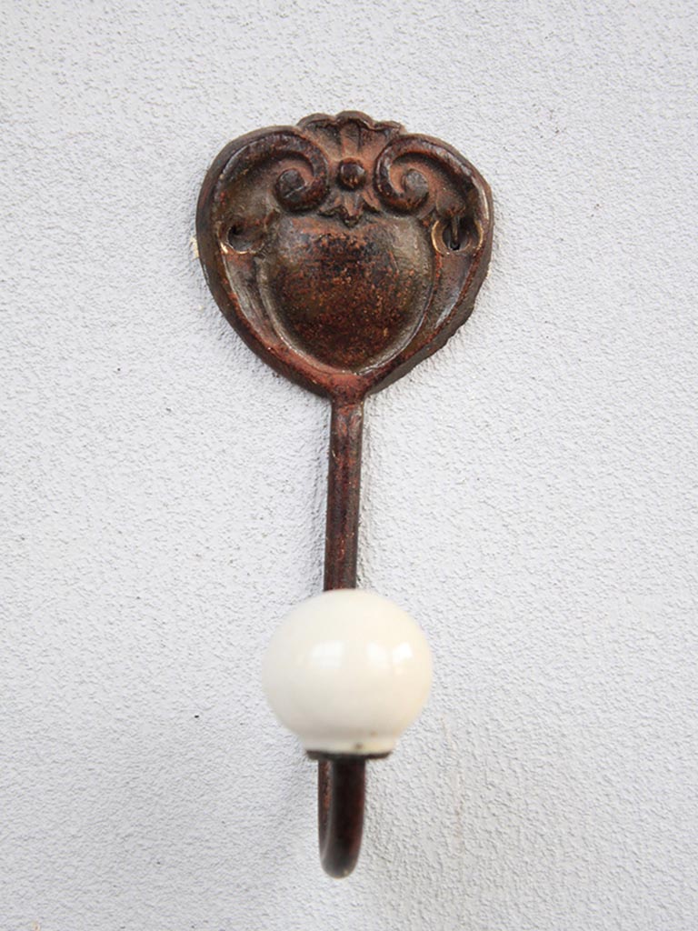Le Crochet en Céramique : À la base du cœur se déploie le crochet proprement dit, surmonté d’une finition en céramique. Cette touche de matière lisse et noble apporte une douceur visuelle et protège vos tissus (torchons, serviettes) contre d’éventuels accrocs. La céramique ajoute cette note de raffinement typique des anciennes demeures de caractère.