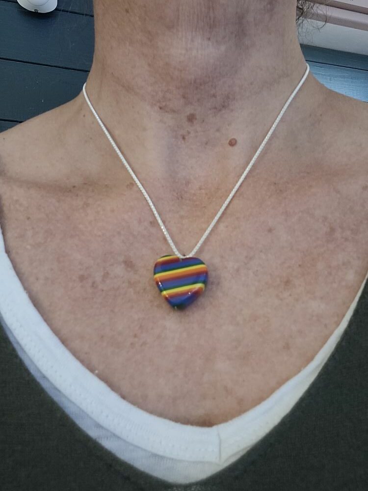 Éclat d’Amour et de Joie : Le Pendentif Cœur Pop Pride Sobral en Résine Arc-en-Ciel et Chaînette Argentée