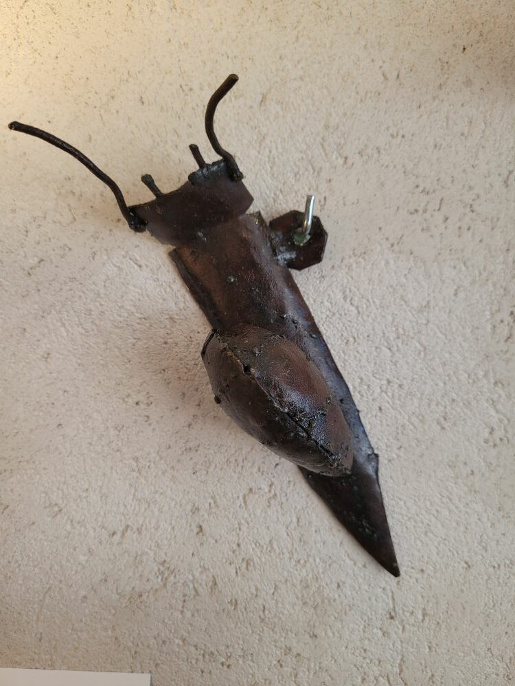 L’originalité de cette sculpture réside dans sa conception verticale. Conçu spécifiquement pour être fixé au mur, cet escargot en métal a été étudié pour recréer avec réalisme la progression lente et fluide du gastéropode sur une paroi.