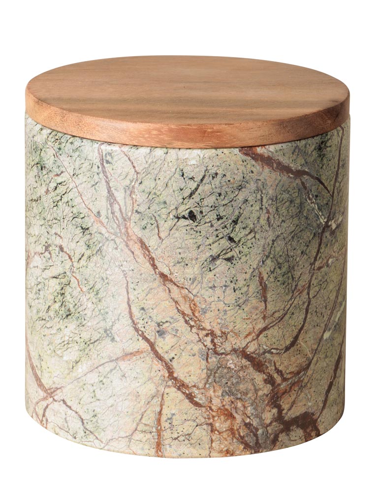 Matériaux Premium : Un véritable marbre vert Forest associé à un couvercle en bois massif.