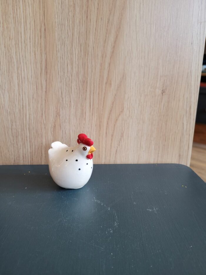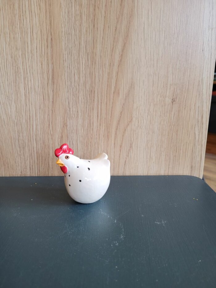 Le travail d’Annie Soret est une véritable célébration de la nature et du monde animal. Après avoir affûté ses compétences au sein de divers ateliers d’arts appliqués, elle a établi son propre espace de création, un lieu où l’argile prend vie sous ses mains expertes. Son inspiration, puisée dans la faune et la flore environnantes, se traduit par des créations originales et touchantes, comme cette mini poule blanche en céramique. Elle incarne à merveille la simplicité et la beauté des animaux de la ferme, réinterprétées avec une touche artistique contemporaine.