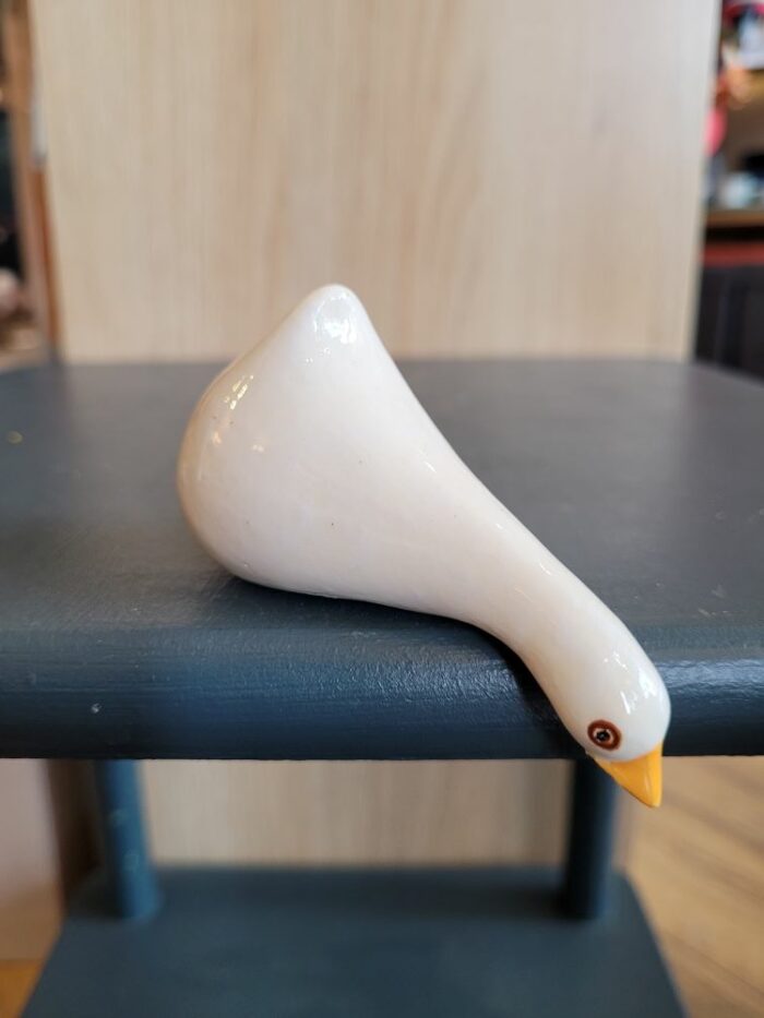 - Dimensions : Très petit modèle, taille miniature pour une présence discrète et charmante. (Bien que la dimension exacte ne soit pas précisée, elle est la plus petite de la gamme “oie penchée”).