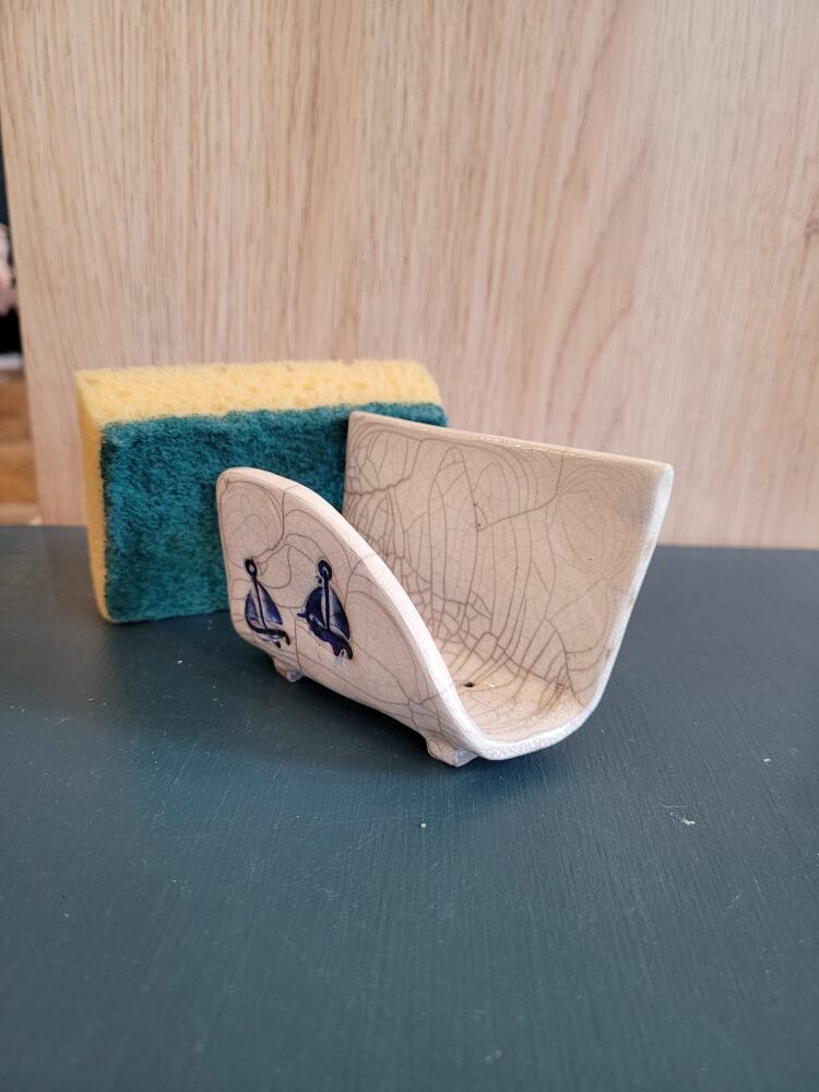 Offrez à votre cuisine ou votre salle de bain une touche d’artisanat unique et fonctionnelle avec notre porte-éponge en céramique façon raku, une création exclusive de la Poterie Les Feux Follet, nichée au cœur de la Vendée. Bien plus qu’un simple accessoire, ce porte-éponge est une véritable œuvre d’art utilitaire, témoignant d’un savoir-faire ancestral et d’une passion pour la matière.