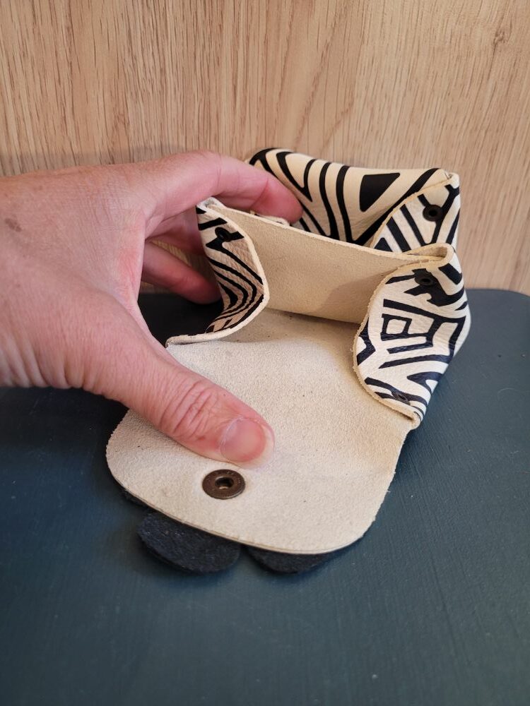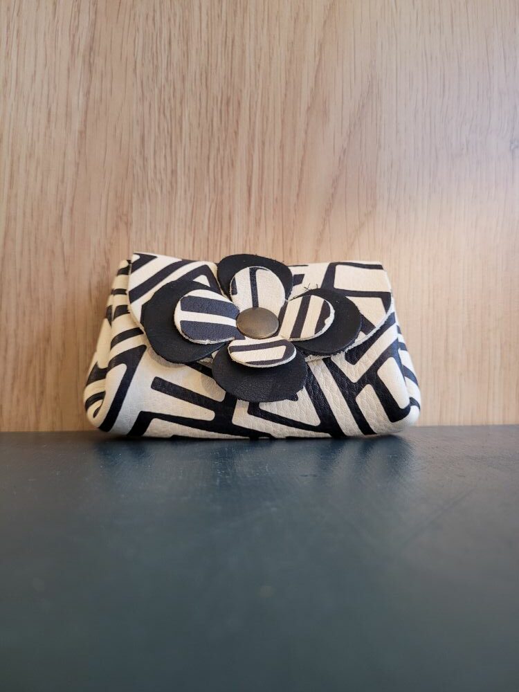 Le caractère artisanal de cette création est la raison pour laquelle vous ne trouverez pas deux porte-monnaie identiques. Chaque peau réagit différemment au tannage et à l’impression, chaque geste du maroquinier laisse une empreinte subtile. Les légères variations du motif noir sur fond blanc et la position précise de la fleur noire rendent votre accessoire totalement personnel. Vous possédez un objet qui a une âme, loin des standards de la production de masse. C’est un choix fort, celui d’une maroquinerie durable et éthique, pensée pour le plaisir d’offrir ou de se faire plaisir avec un accessoire qui a du sens.