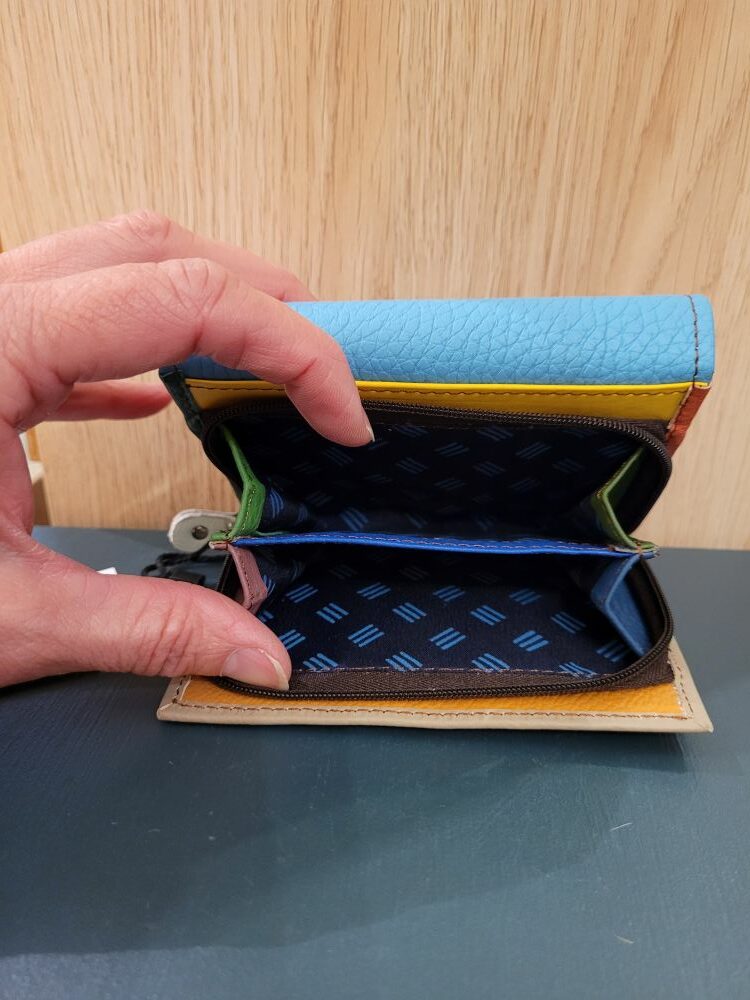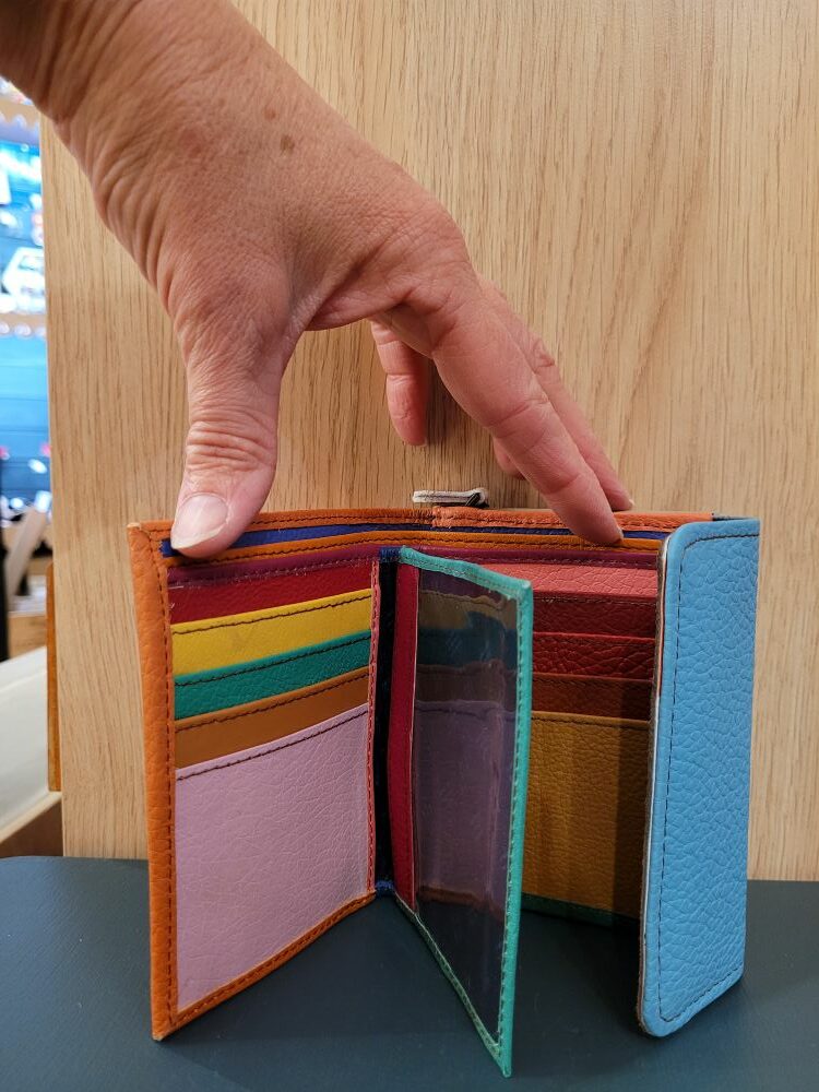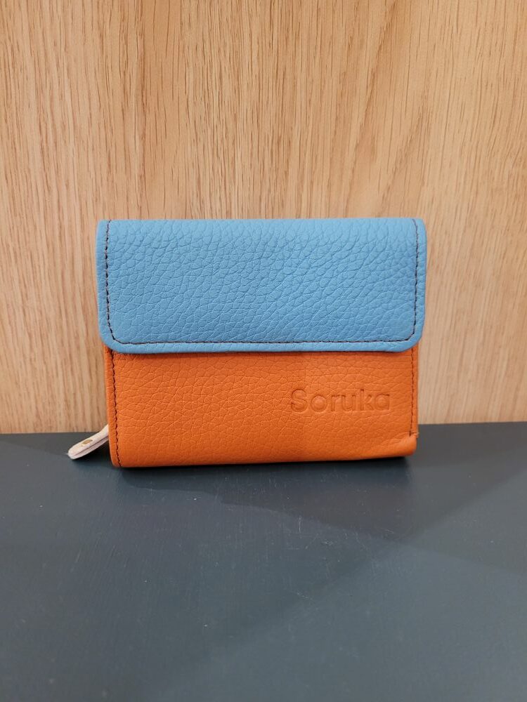 Portefeuille en cuir RINGS orange et bleu – Organisation colorée et durabilité artisanale