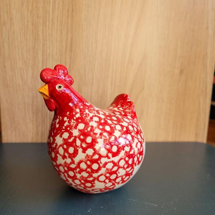La céramique est un matériau durable et facile à entretenir. Un simple coup de chiffon doux suffit à préserver la beauté de cette poule rouge. Sa couleur éclatante est obtenue grâce à des émaux de qualité qui résistent à la lumière et conservent leur intensité au fil du temps.