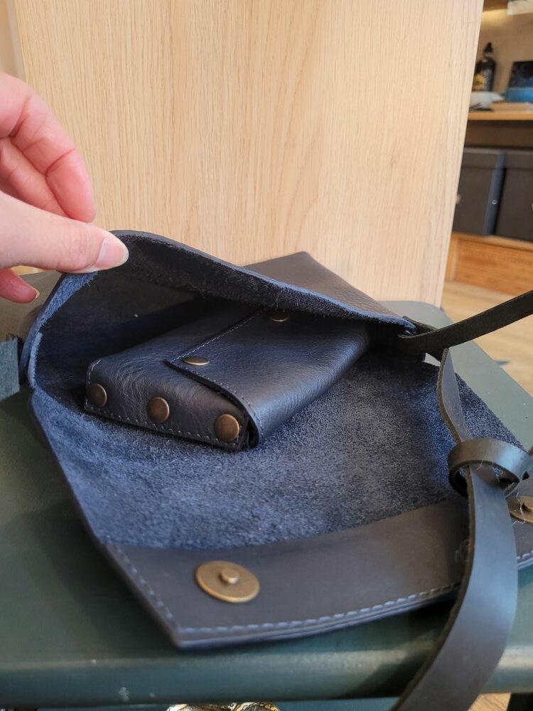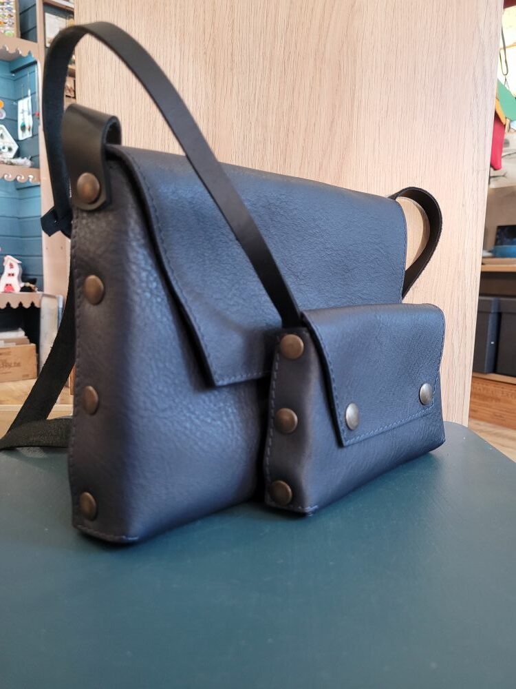 Chaque sac Biwé est une pièce unique, confectionnée avec passion par Cuir à Part, un artisan maroquinier établi dans le magnifique Lot-et-Garonne (47). En choisissant cet accessoire, vous soutenez une fabrication française artisanale, qui privilégie la qualité, la durabilité et l’attention portée aux moindres détails. Cette approche de production locale et limitée confère au Biwé une âme et une authenticité rares sur le marché de la maroquinerie. Le cuir bleu marine confère à ce sac une polyvalence remarquable. C’est une teinte classique, chic et facile à marier, qui apporte une note d’élégance discrète à n’importe quelle tenue, qu’elle soit professionnelle, décontractée ou de soirée. Ce coloris profond est une alternative raffinée au noir, s’associant à merveille avec des tons neutres, des couleurs vives ou des motifs variés.